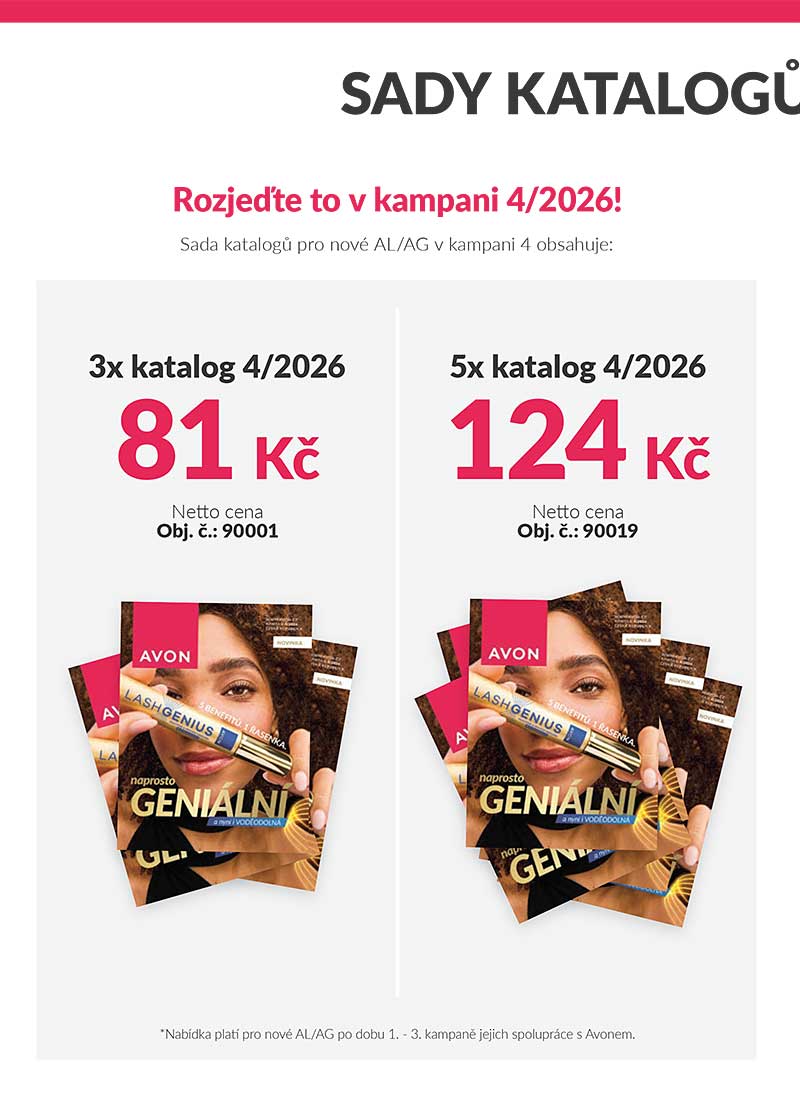 Objevte nejnovější kosmetické produkty v posledním Avon katalogu duben 2026! Ten přináší široký výběr kosmetiky, péče o pleť a módy, které vás rozzáří. A co víc, registrace přímo zde na našem webu má své výhody. Budete mít možnost získat exkluzivní slevy, dostávat informace o nejnovějších produktech a účastnit se speciálních akcí.